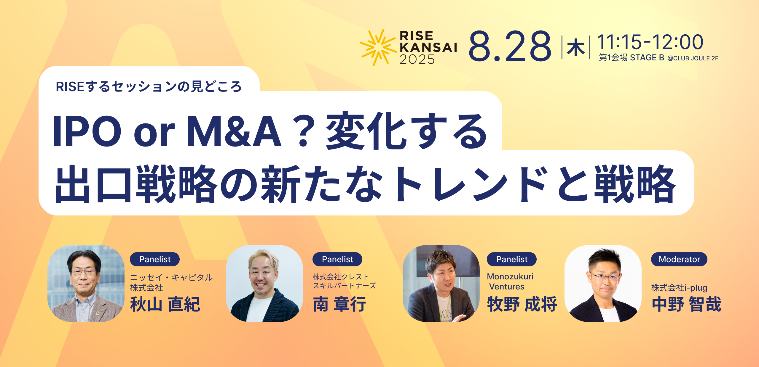 本セッションでは、IPO基準の見直しや市場構造の変化がEXITに与える影響を踏まえ、今後の潮流を徹底討論。実務経験豊富な投資家たちが、成功するための出口戦略の条件や最新のトレンドを共有します。これからのスタートアップに欠かせない知見が凝縮された45分です。